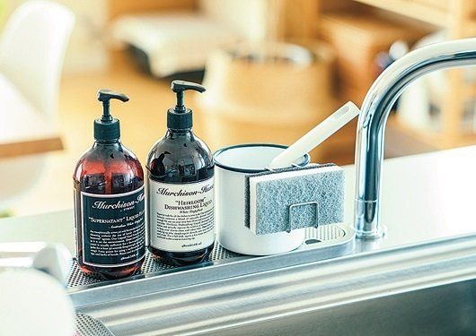 ▲不要になったホーローのコップに接着剤でフォルダをつけて、スポンジ置きに。これなら清潔だし掃除もラク