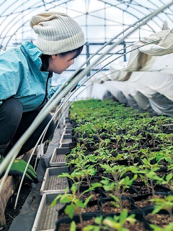 「家庭菜園をきっかけに農業に興味を持ち、自治体に相談に行ったところ、就農支援制度を知りました。実際の作物ごとの所得平均や作業時間などを見て、私にもできるかもと思えるように」。1年半の農業研修を経て、使われていない畑を借りて農業を開始。「メインの農作物の栽培、収穫はこれからですが、毎日農作物に触れる生活はとても健康的。女性1人でも農業ができることを発信して、農家になりたい人が増えたらいいなと思います」。