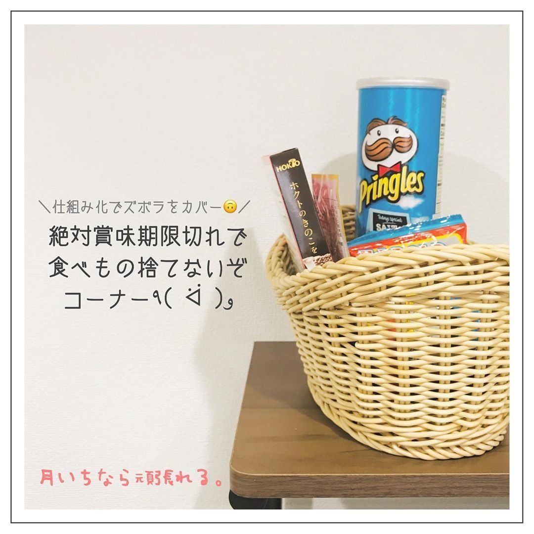 ___acari___さんは「あれ、これ賞味期限先月までだった……」ということをなくすために、賞味期限が近いものをまとめるコーナーをつくりました。整理は月初に1回、翌月で賞味期限が切れるものを対象にまとめるのだとか。期限をすぎたものを廃棄することがなくなったうえに、在庫管理にも役立っているようです。