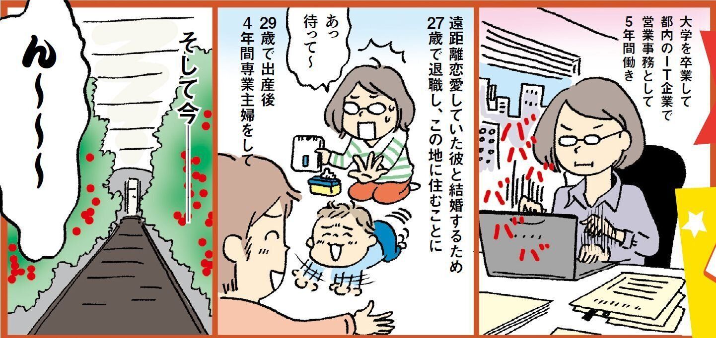 大学卒業後IT企業に就職し、営業事務を担当。27歳で結婚退職。29歳で長男を出産。33歳で農家のパートをスタート。平日4日、8時半~13時半で働く