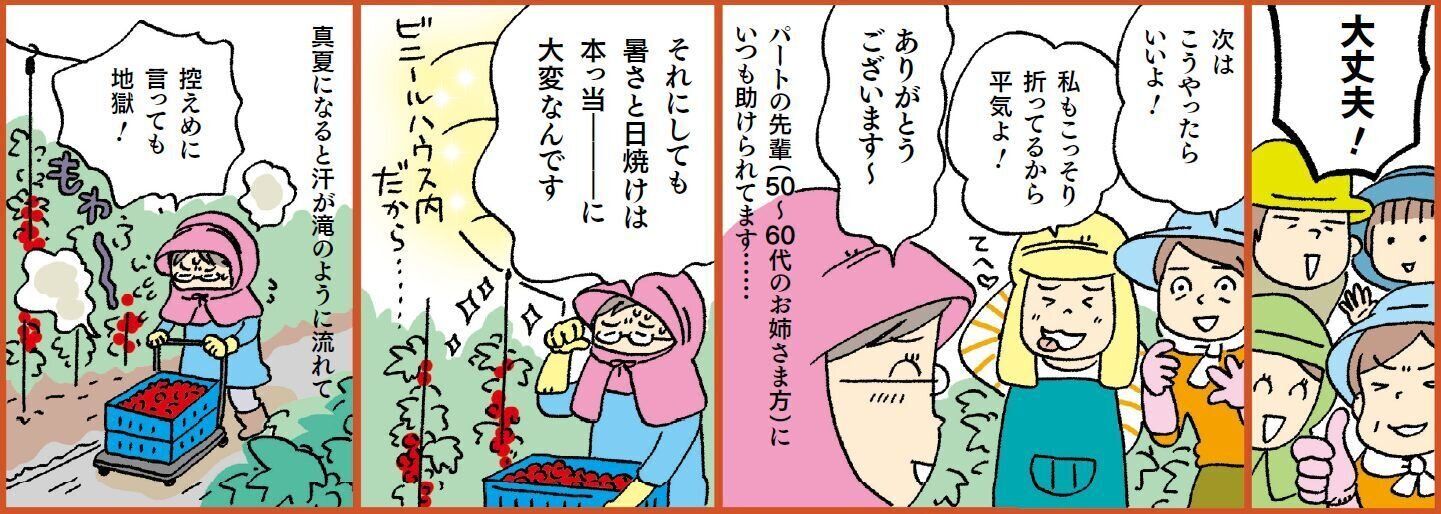 東京でOLをしていた原田さんにとって、農家で働くことはとても新鮮な経験だったことでしょう。自然にふれながら四季の移り変わりとともに生きていく。農業にはそんなすばらしさがありますね。