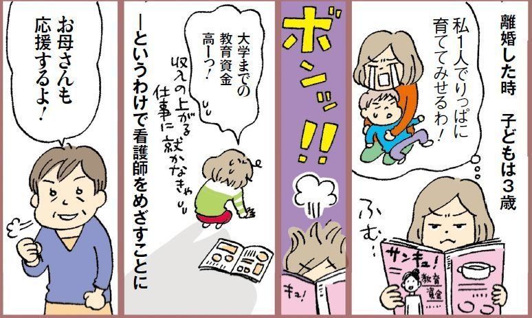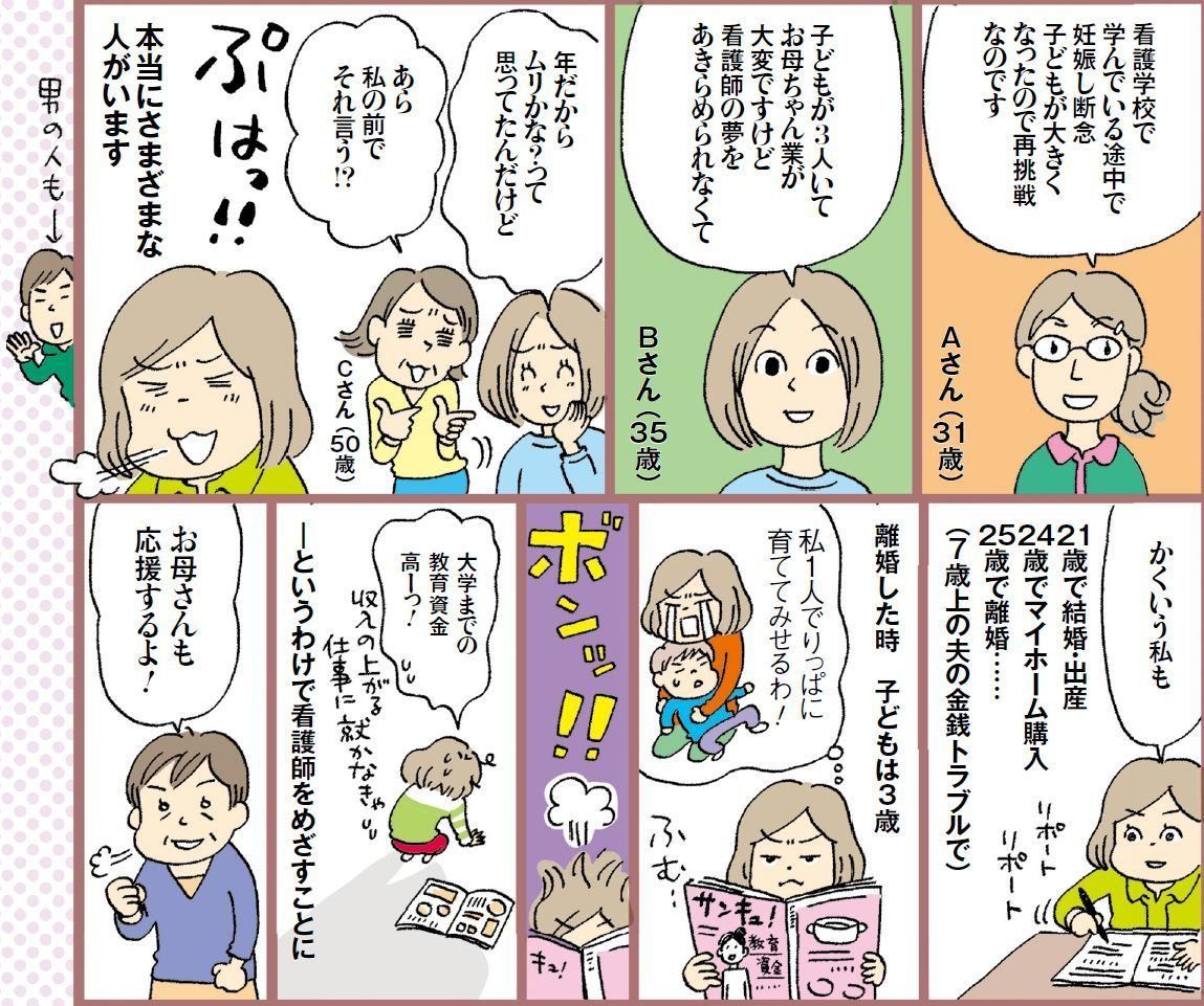 高校卒業後、飲食店に就職し接客を担当。20 歳で介護士に転職。21 歳で結婚し長男を出産。 産後2カ月で職場復帰。25 歳で離婚しシングルマザーに。26歳で看護学校に入学。正看護師になることを目標に介護士を続けながら勉強中