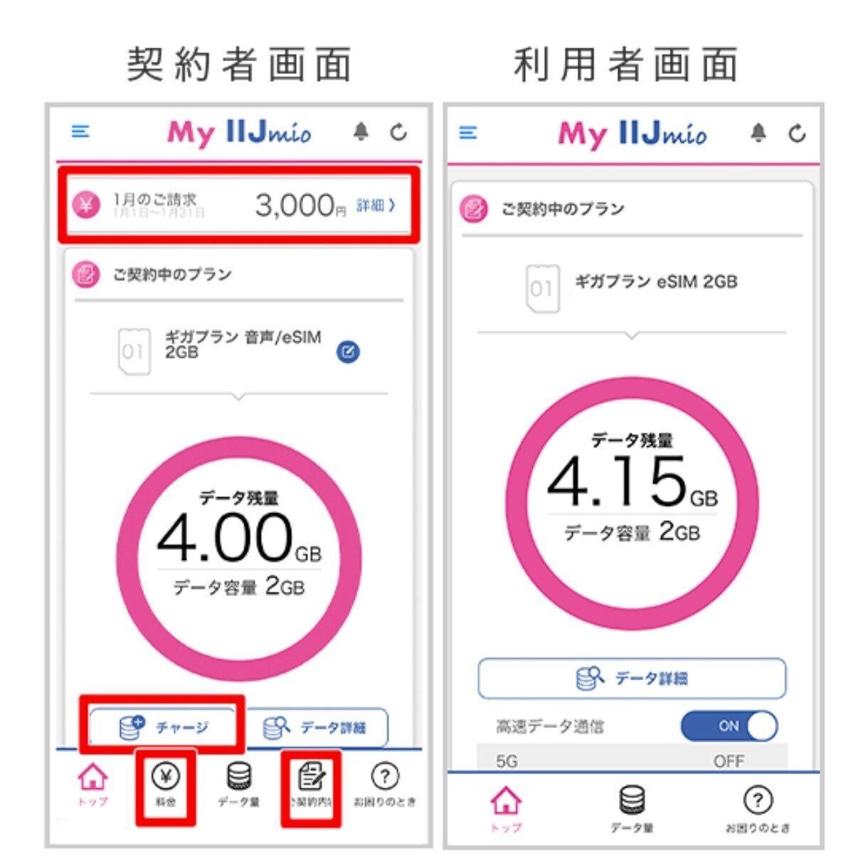 ※2ギガプランを契約していますが、前月分を繰り越しているのでデータ残量が4ギガになっています。