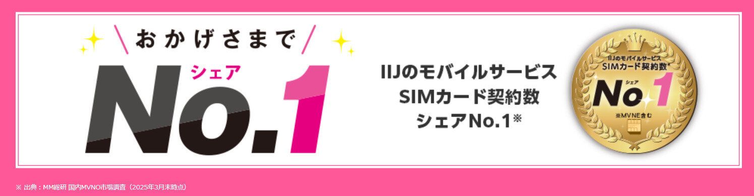 筆者は今回初めて知ったのですが、シンプルな料金プランと柔軟なオプションの評価が高く、IIJmioはMVNO市場シェアNo.1※です。