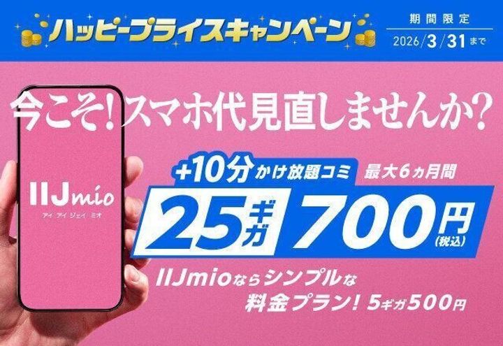 IIJmioでは、今なら最大6ヵ月間、25ギガ700円+10分通話定額オプション無料と、お得なキャンペーンが開催中。また、人気の15ギガプランは、3月1日からの料金改定より、今よりも月額200円引き、年間2,400円もおトクになるそうです。これから子どもの休暇や仕事のバタバタが多い春先に向けて、ギガが多めにあると安心な時期です。eSIMならサクッと時短で契約できるので、まずは一度試してみるのはいかがでしょうか。