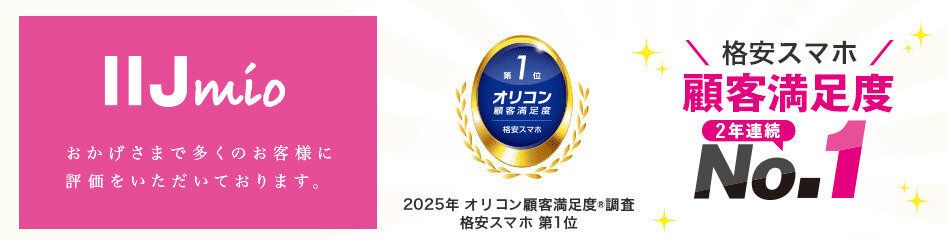 それでいて、人々のニーズにぴったりな料金で提供している「IIJmio」は2025年 オリコン顧客満足度®調査 格安スマホ 2年連続総合第1位なので安心して使えます。