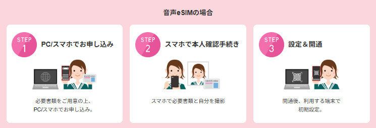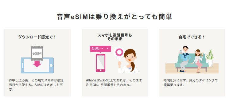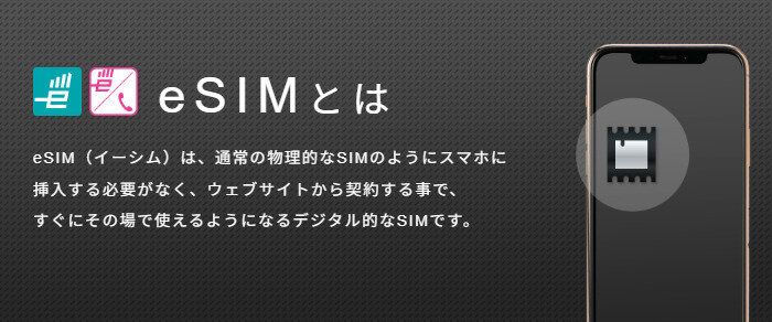 eSIMとは、スマホ本体に内蔵されたSIMのことを言います。従来のように小さなSIMカードを抜き差しする必要がなく、公式サイトから申し込みしたあと、QRコードを読み込むと回線設定が完了します。