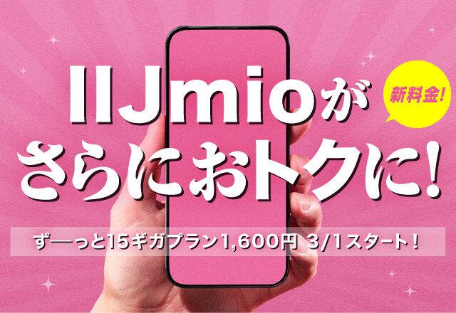 IIJmioは3月1日から15ギガ1,800円のプランが200円おトクになり1,600円に(音声SIM/音声eSIMの場合)。たっぷりギガを使えるのに節約もできちゃうので、ぜひ検討してみてくださいね。