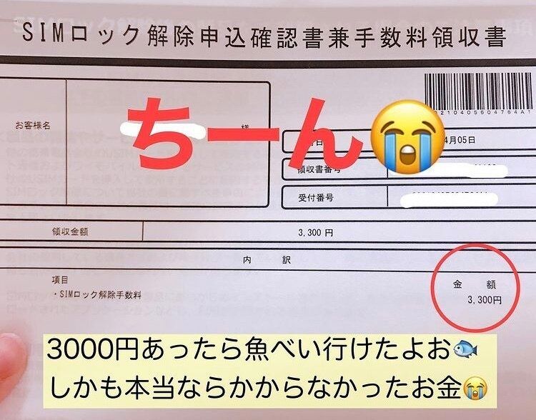そうなると、店舗でSIMロックの解除してもらわないといけなくなり、店舗での解除だと3,300円がかかるんです(泣)